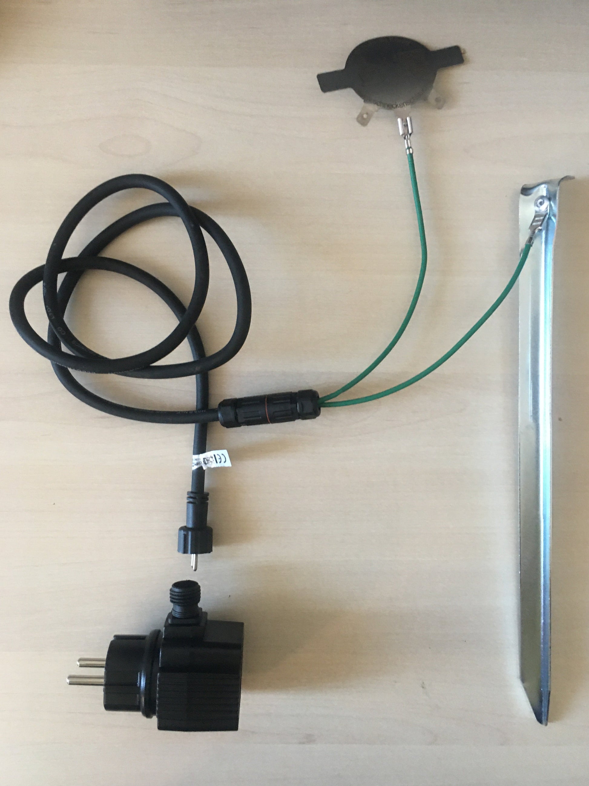 Den grünen Anschlußdraht können Sie direkt in den Erdboden verlegen Längen bis zu 100 Metern sind möglich.