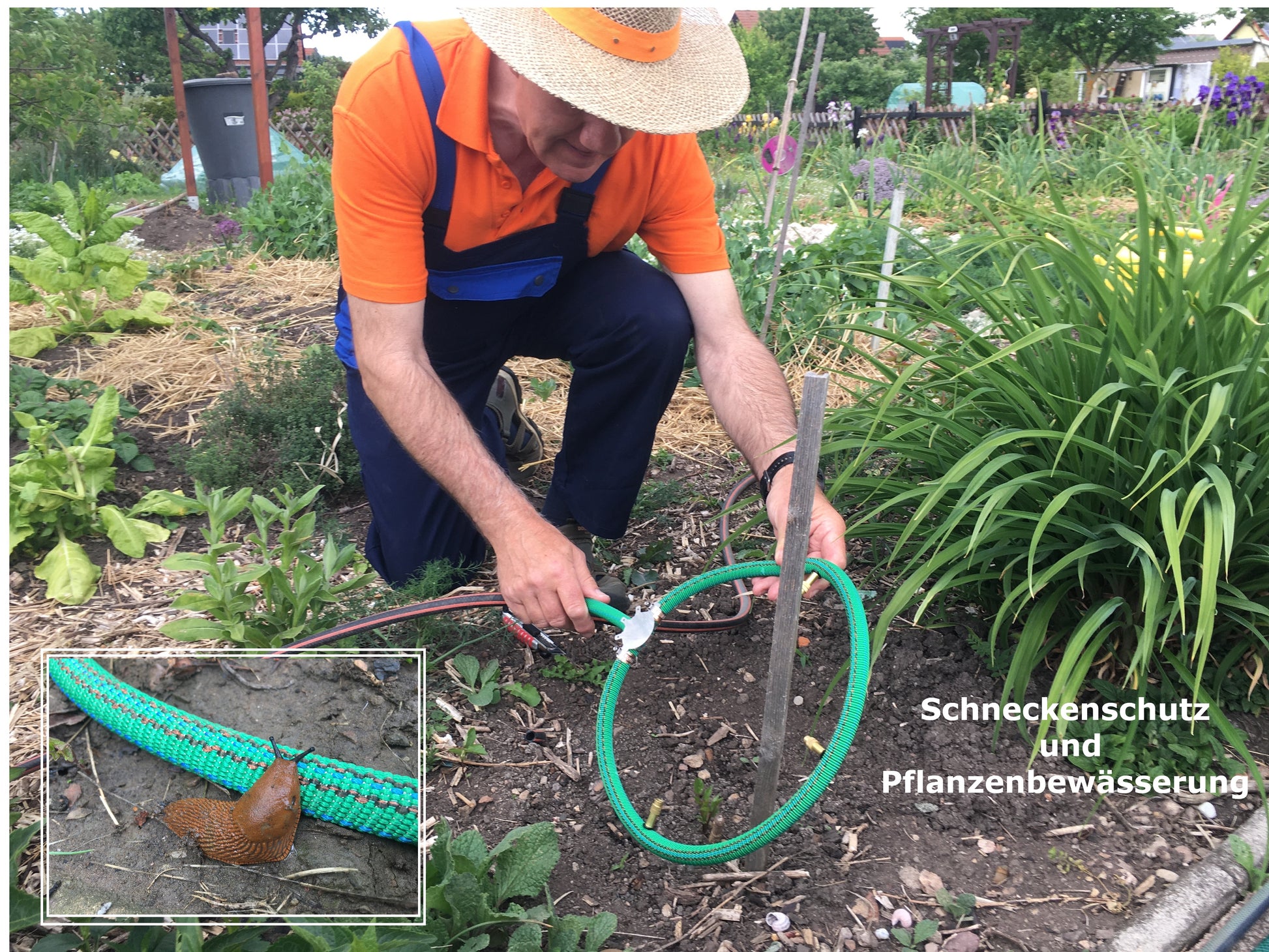 Eine Pflanzenbewässerung mit Sprühdüsen oder Tropfrohren ist ebenso möglich, wie mit dem neuen grünen Gewebe-Schneckenschlauch.