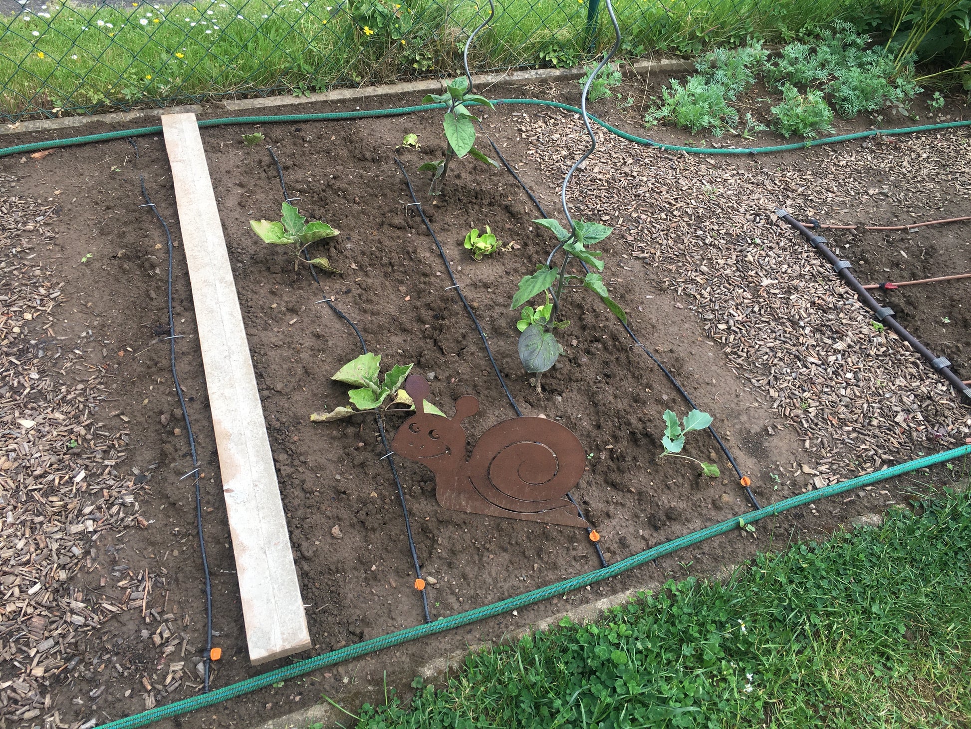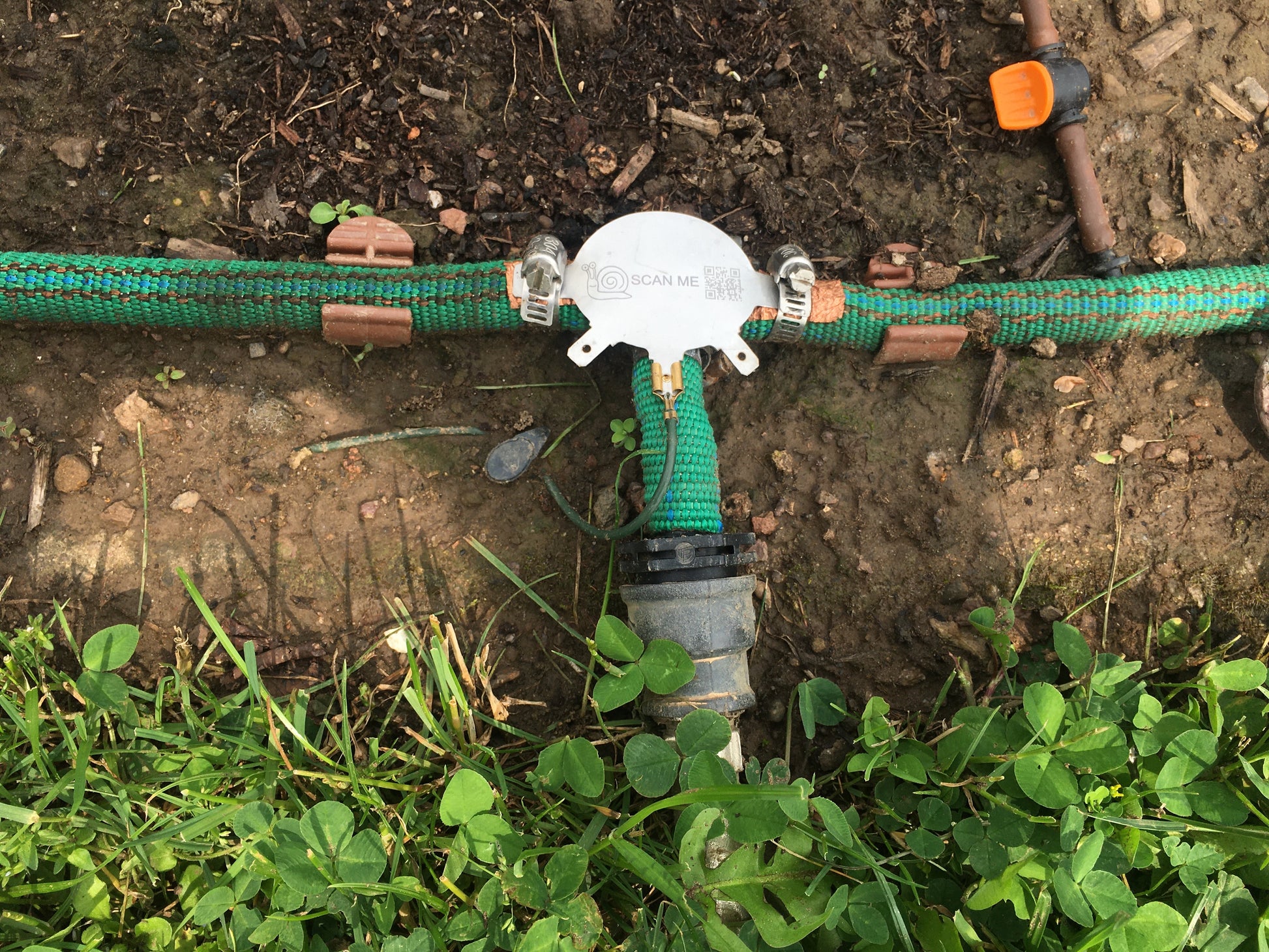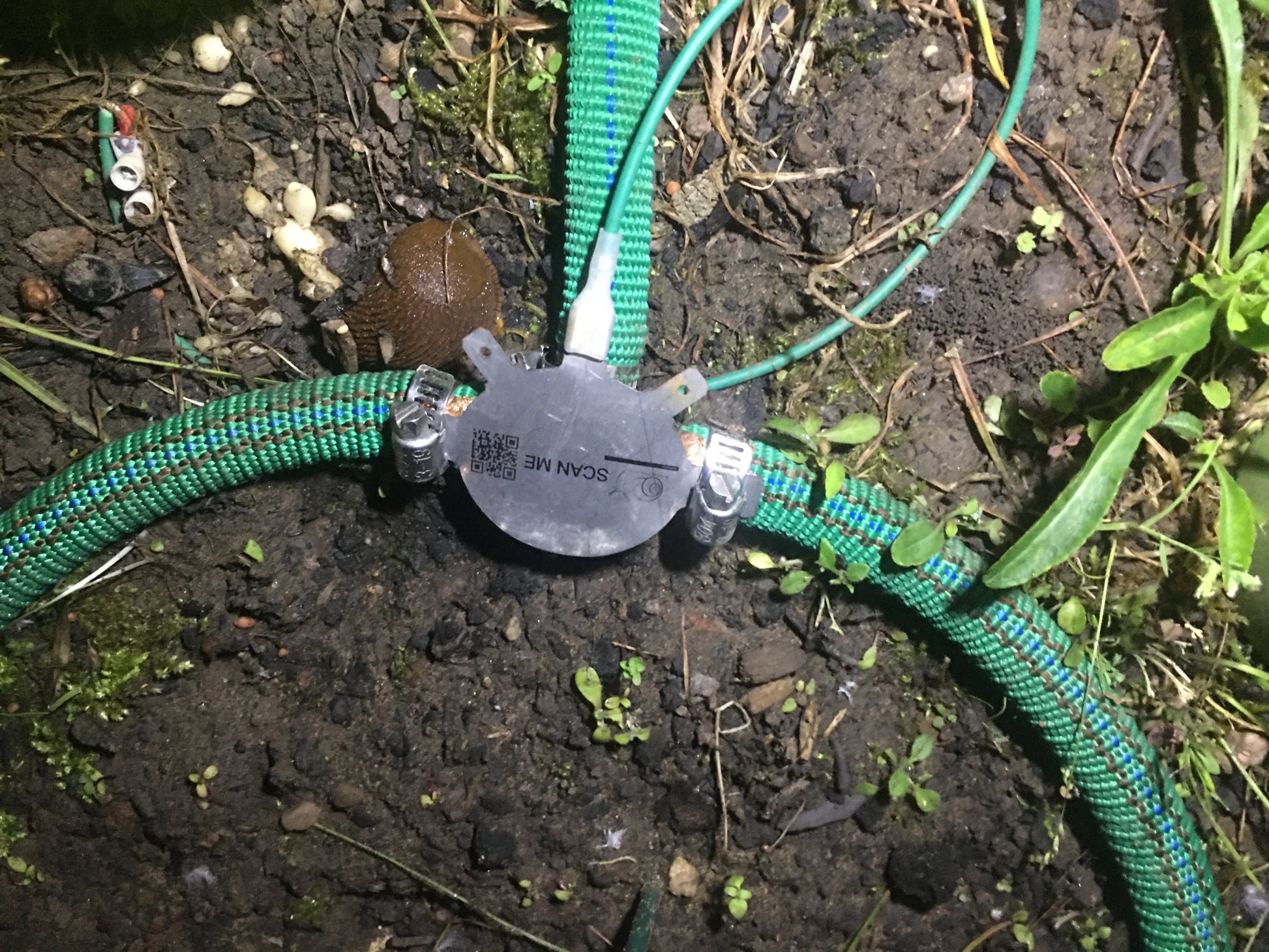 Inhalt: 12V Steckernetzteil, zwei T-Stücke, zwei Edelstahlblenden, Erdungspfahl und einem Kabelsatz zum unkomplizierten Anschließen, sowie 12 Kunststoff Erdanker zum arretieren des Gewebeschlauches, und 10 kleine Erdspieße zur Befestigung der Drähte auf dem Erdboden, und weitere Kleinteile. Die letzte vier Fotos zeigen den Aufbau in einem Garten und eine Nacktschnecke am Schneckenschlauch.